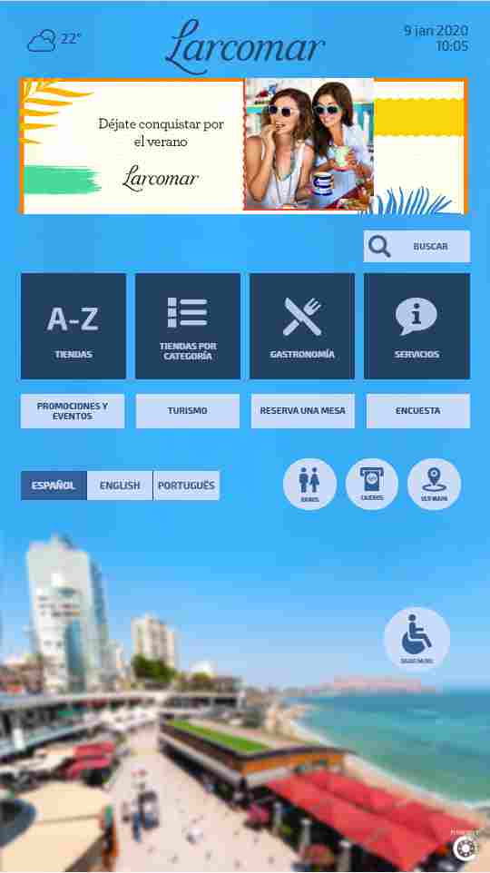 Avec 7 bornes outdoor géantes, Larcomar est le 3ème centre commercial au Pérou équipé de la solution d'orientation interactive ViaDirect.