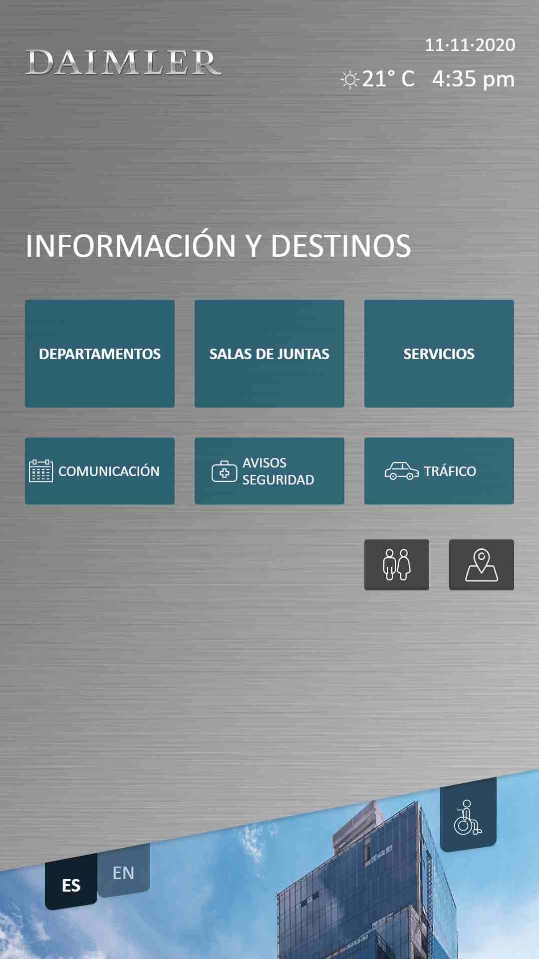 ViaDirect has equipped Daimler’s corporate building with 10 interactive kiosks model Lemurien with a 49” touch screen and ViaDirect’s interactive software.
