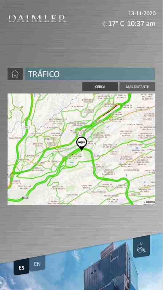 The ViaDirect’s software includes a 3D map of Daimler’s new headquarters in Mexico spread over 10 floors, where employees can search for destinations such as meeting rooms, company areas, and company restaurants. In addition, the software also includes a projection of real-time road traffic conditions around the corporate building.