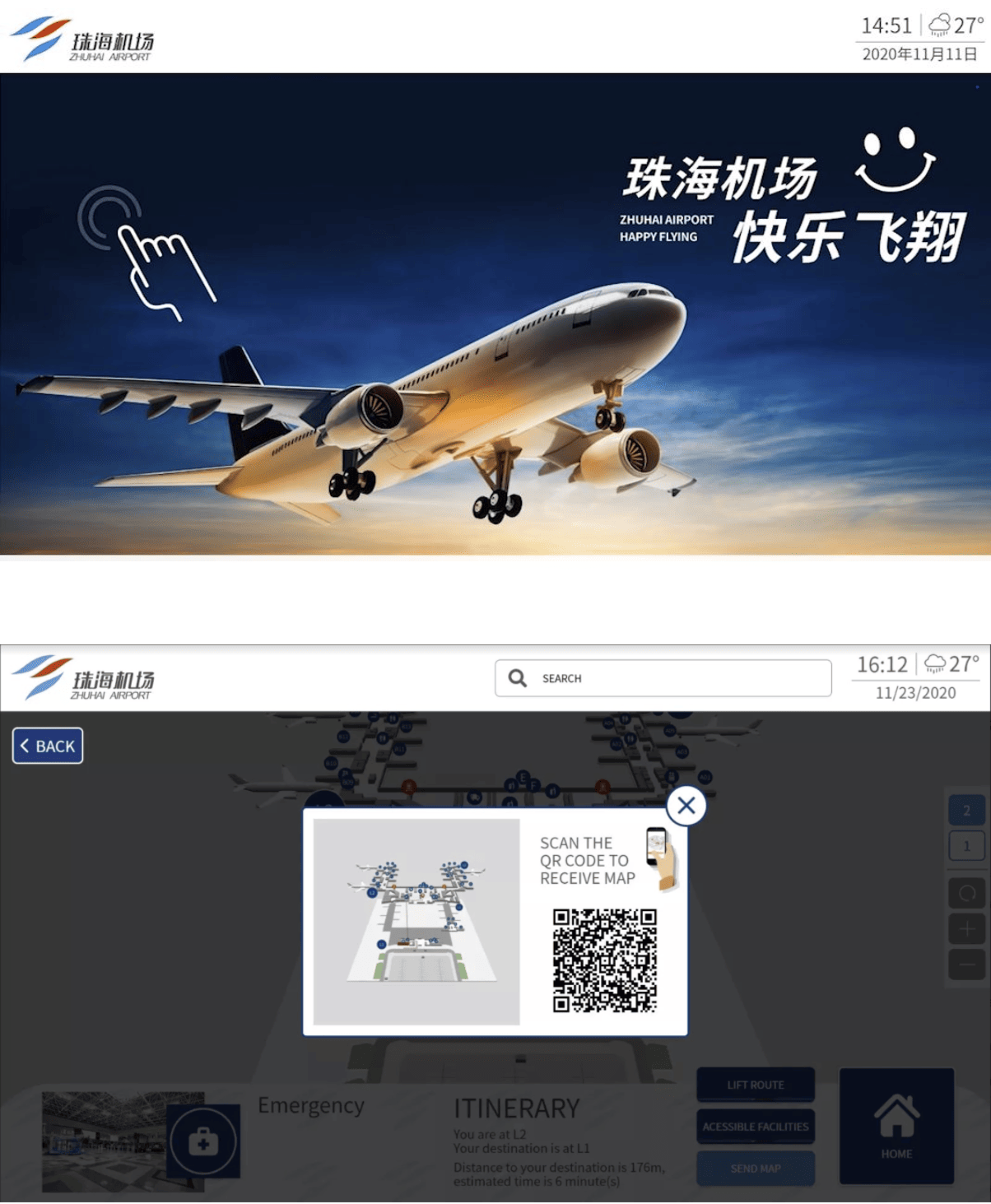 With airports regaining confidence in welcoming more passengers, Zhuhai Jinwan Airport decided to invest in the future by equipping digital wayfinding kiosks : 3 neat-designed kiosks providing useful information to any passenger of the Airport.