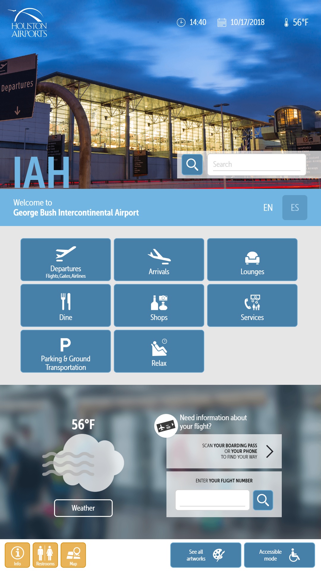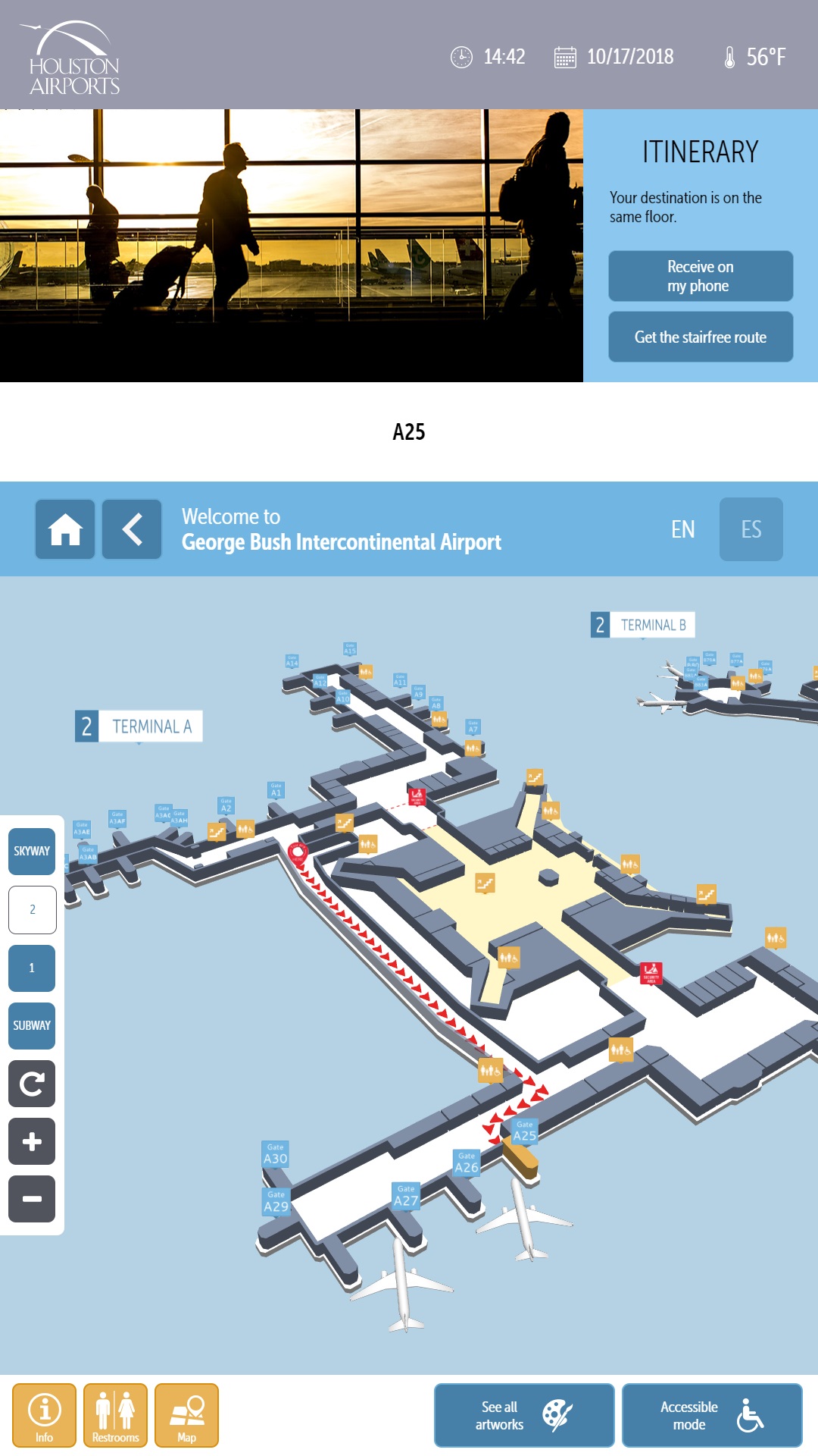 Six vertical interactive wayfinding kiosks have been carefully set up around HOU Terminal two floors.